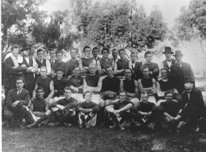 J. Kiker (Capt), F. Finch, E. Stewart, F. Peterson, the four Mau brothers, P. Kenny, W. Tuck, S. Willcox, W. Shambrook, W. Hutton, L. Boyle, H. Jacobs, A. Aumann, H. Budge and A. Arnall were members of the first team.